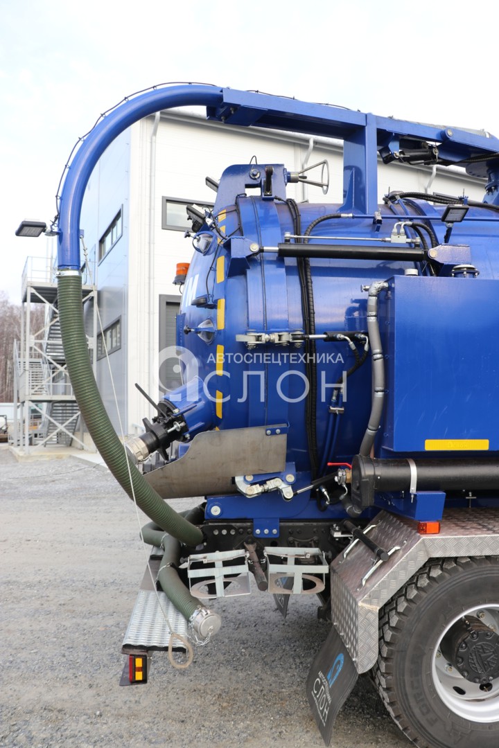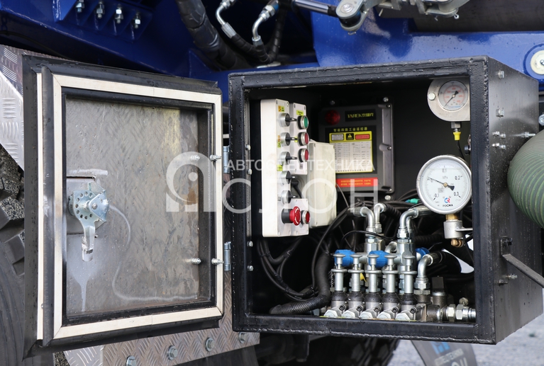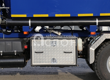 Гидравлический подъем цистерны Гидрозамки для прижима заднего днища - 4 шт. Стрела поворотная с гидравлическим подъемом и опусканием, с фиксатором в транспортном положении и пневматическим краном Радиопульт управления навесным оборудованием Подогрев водяной магистрали и плунжерного насоса Плунжерный насос, катушка с рукавом 15 м. и пистолетом расположены в утепленном алюминиевом ящике, обогреваемом автономным отопителем Планар-2Д, со светодиодной подсветкой. Дверь ящика открывается вверх вертикально. Система легкого заполнения На дне цистерны лист из нержавеющей стали для облегчения выгрузки иловых отложений Желоб сливной широкий из нержавеющей стали Светодиодное освещение зоны работы машины с 3-х сторон (по 2 фонаря слева, справа, сзади) |